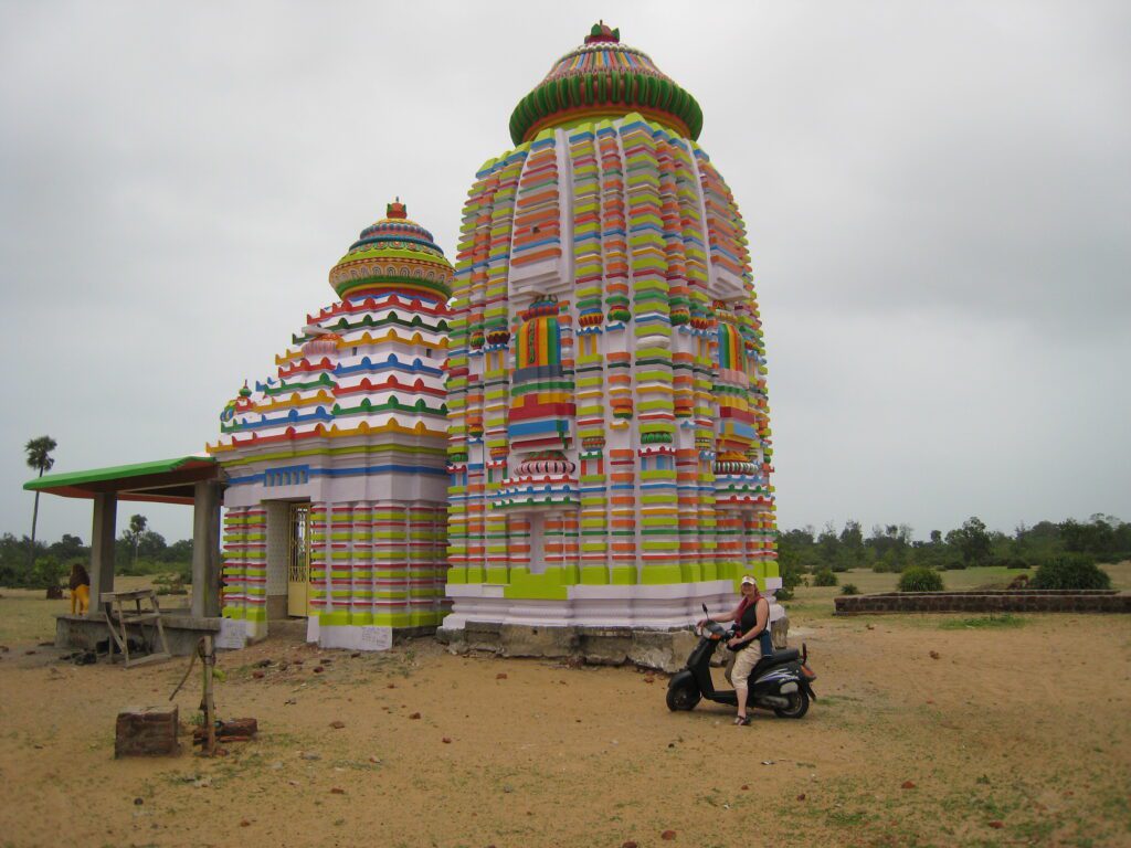 Gisteren hebben we een motor/scooter gehuurd om naar Konark te gaan (36 km) – geweldig ging dat. Hele mooie rustige weg – een soort beachroad – en we konden lekker overal stoppen en kijken onderweg. Links rijden ging Dirk goed af.