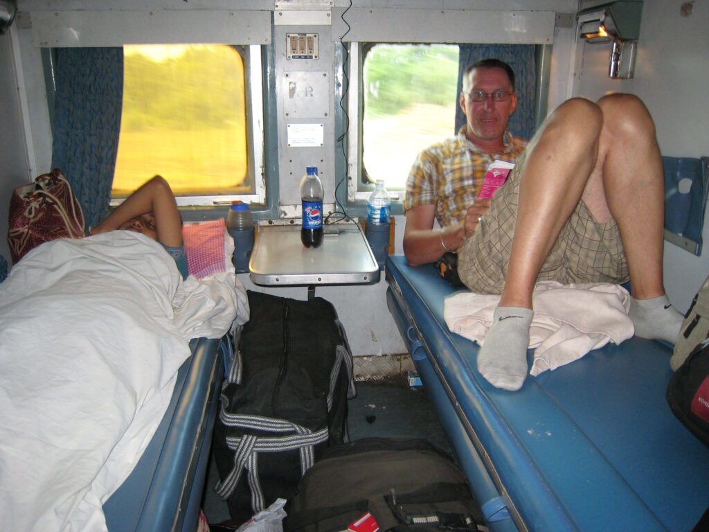 Je zit dan met 4 personen in een coupe waar de banken 4 bedden worden met airco. Goed geregeld dachten we. Helaas, de trein heeft bijna 11 uur vertraging en we vertrekken niet om 14.35 uur maar om 01.50 ’s nachts. Ach, wij hebben niks te klagen en laten het maar over ons heen komen.