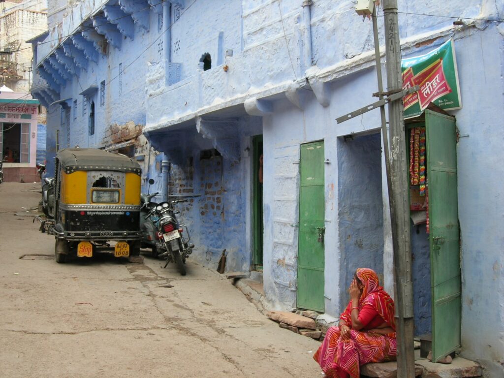 Iedereen is zeer behulpzaam en wijst ons prima de weg door de smalle straatjes van de “blauwe” stad, zoals Johdpur ook wel genoemd wordt. Uiteindelijk komen we zonder problemen aan in een indrukwekkend fort. Wel dure toegangskaartjes, maar met een geweldige service:  sound tour (niet in het nederlands J) drankje ed. Het hele fort is geweldig en we hebben er echt onze ogen uitgekeken. Met de riksja terug naar het hotel (uitvalsbasis) om bij de Omelette Shop wat eitjes te eten, daarna wat rondgedoold door de winkelstraatjes. Jodhpur en het hotel bevallen uitstekend.