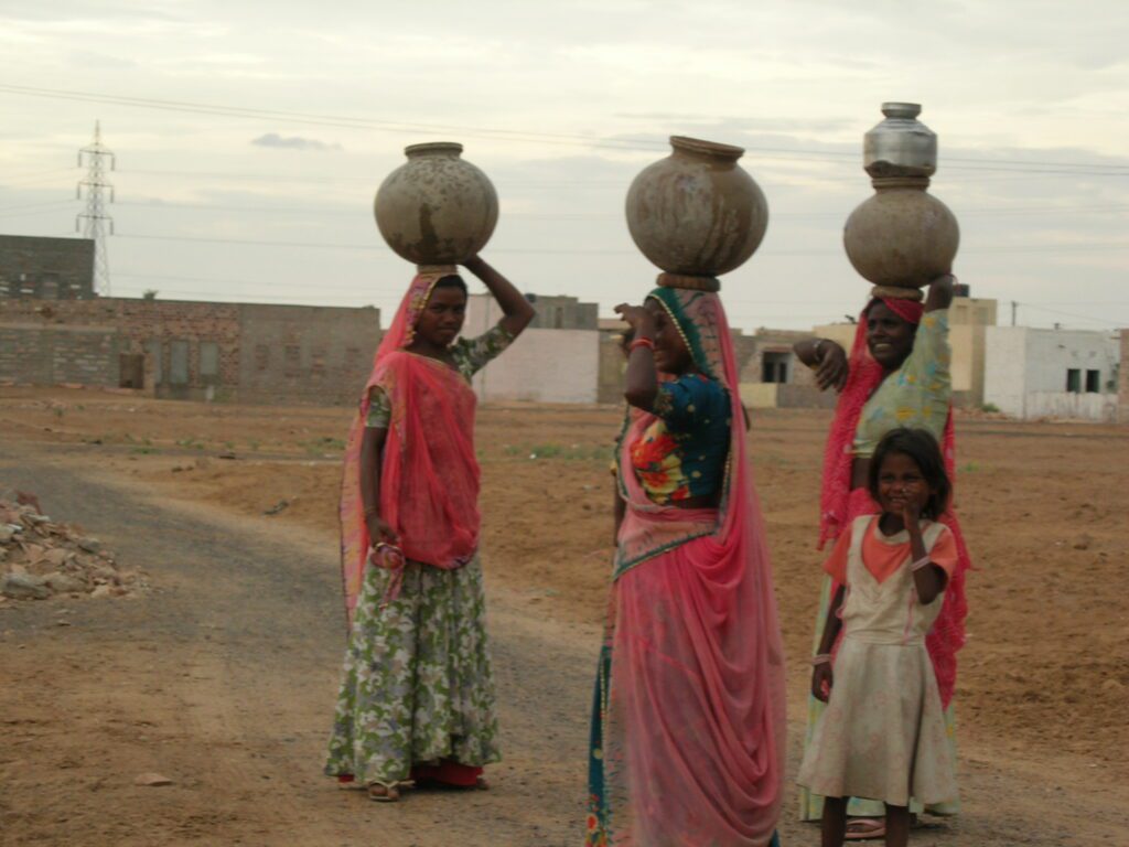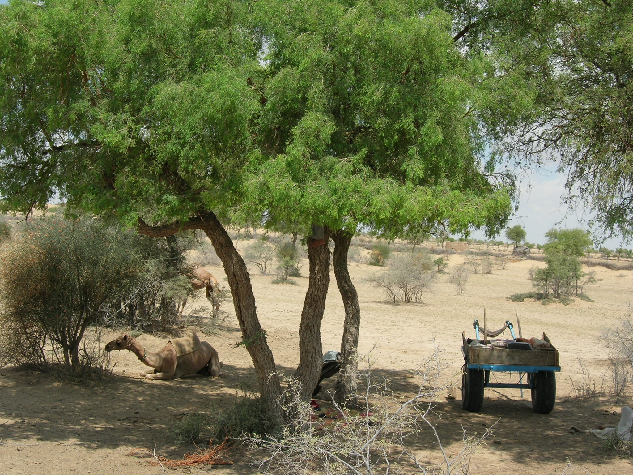 Op een of twee plekken in deze Thar woestijn was het bijzonder groen. Daar hadden ze een irrigatiesysteem en dat was een kostbaar bezit. We kochten daar melk voor de thee en komkommer voor het eten. De kamelen dronken water bij de put.
