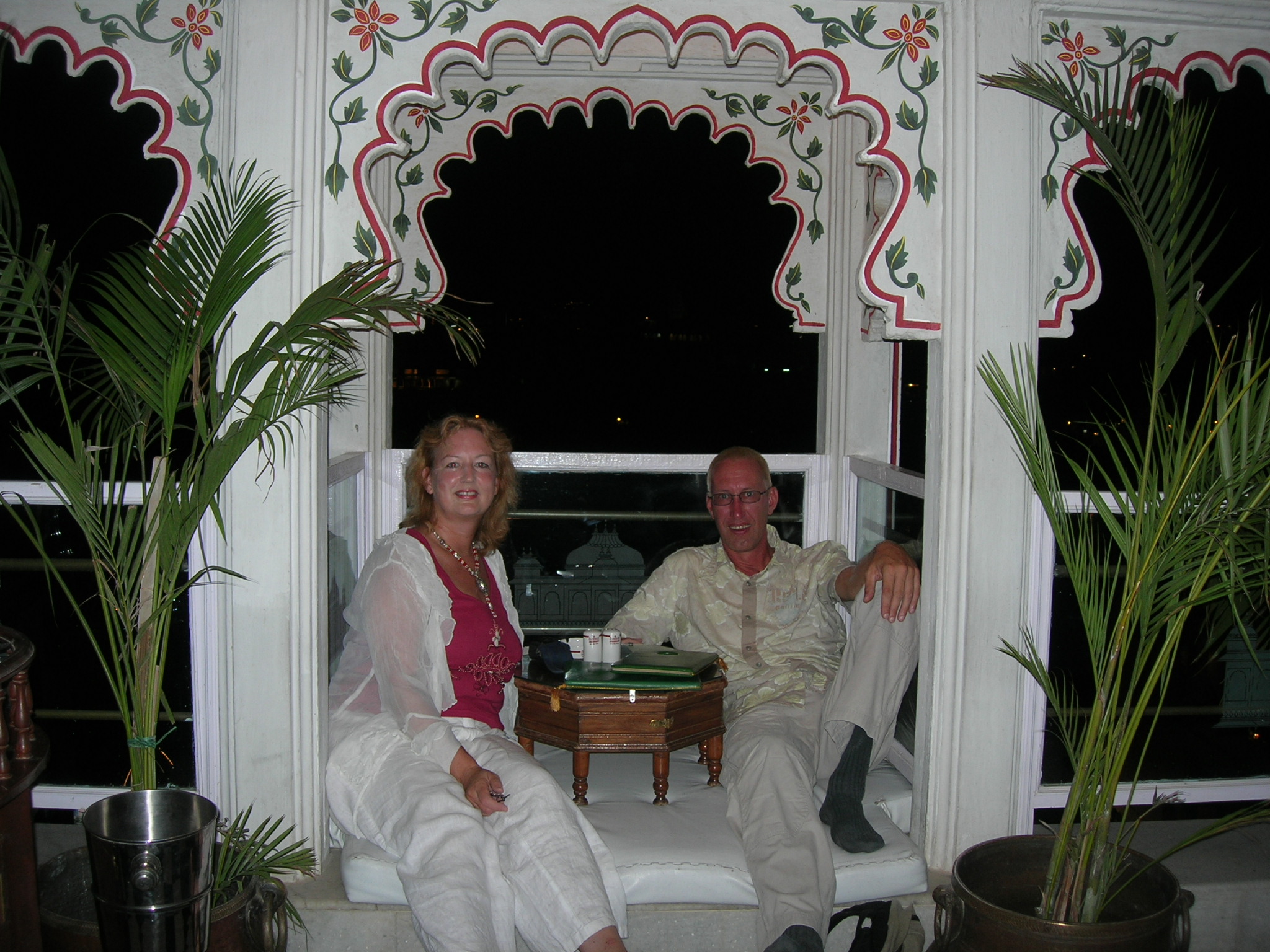 Om 05:00 uur kwamen we aan in Udaipur, midden in de stad op een leeg plein in het donker met 1 wachtende riksja driver (gelukkig!!!). We werden zonder veel gehassel naar ons hotel gebracht. Het hotel had keurig de uitcheck-kamer voor ons geregeld. Onze echte kamer kwam om 10:00 beschikbaar. Na lekker gedoucht te hebben zijn we als een blok in slaap gevallen.