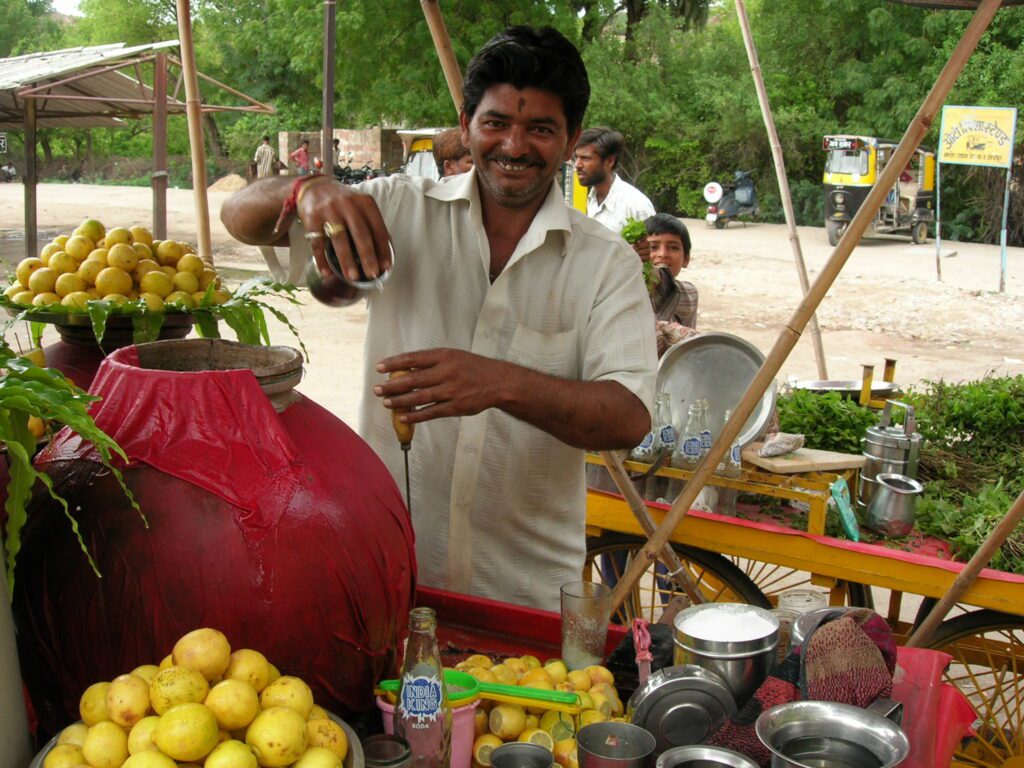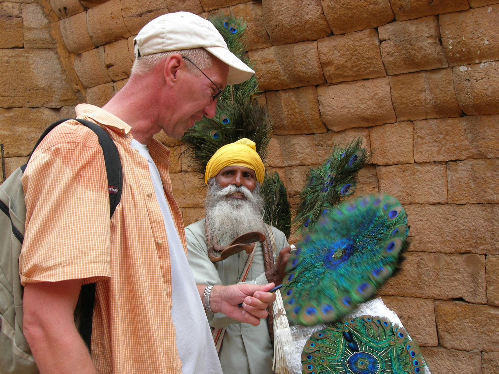 We vertrekken richting Jaisalmer en merken dat we de woestijn naderen, want het wordt warm en door de monsoon ook vochtig. Aangekomen bij het busstation laat ik Trudy de riksja regelen. Maar ze wordt overvallen door 20 riksja drivers die ons achtervolgen tot in de restaurantjes om maar aan en ritje te kunnen komen en wat we ook doen om van ze af te komen, ze laten zich niet wegsturen.