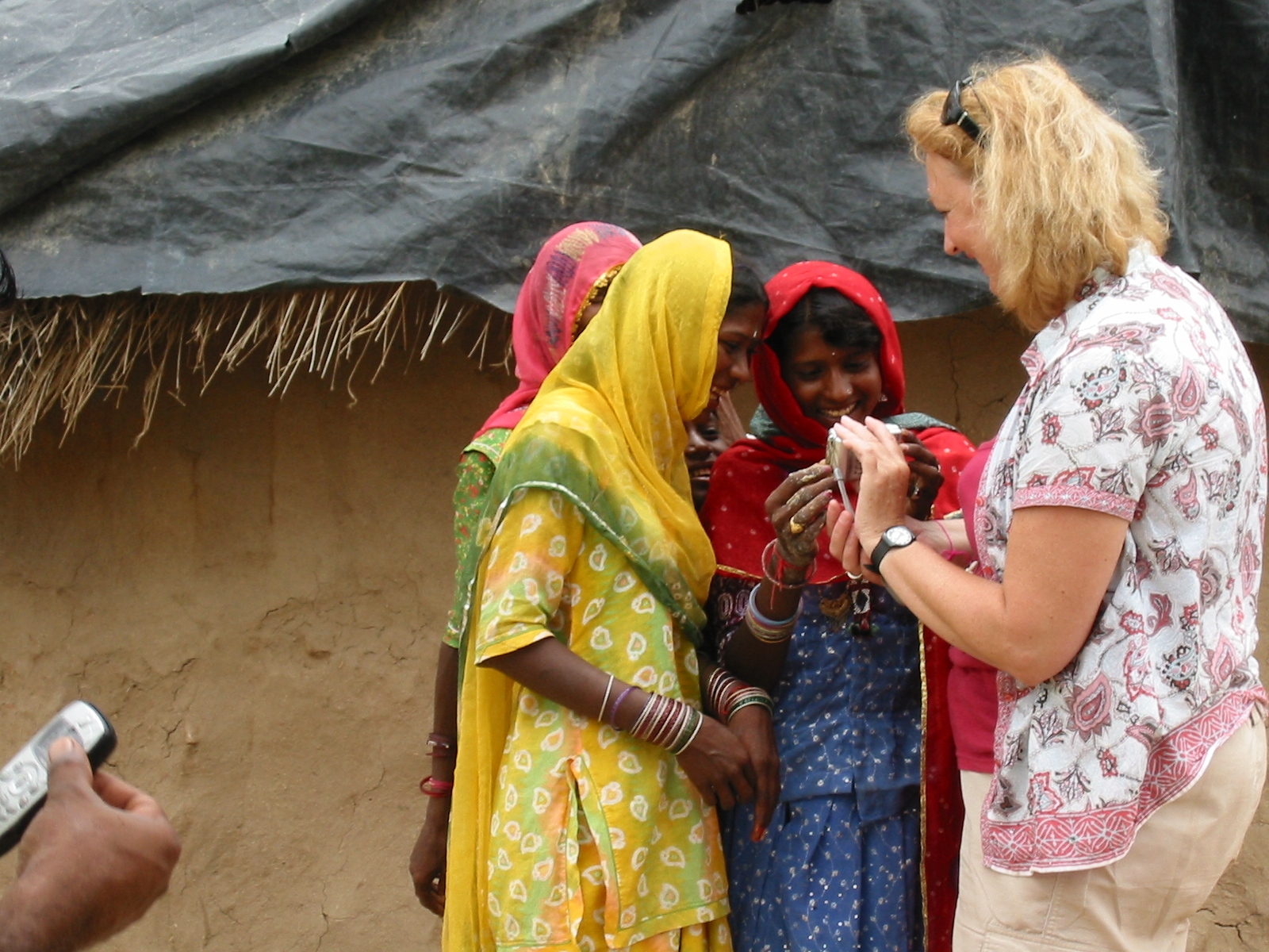Tijdens onze verkenningstocht in Jaiselmer komen we uiteindelijk op het busstation uit waar we op een of andere manier toch iets met een camel safari regelen. We denken met de bus naar Krisha te komen, een dorpje in de woestijn, maar dan blijkt dat we wel heen maar niet meer terug kunnen met de bus. We spreken met wat mensen en tenslotte huren we voor een matsprijs dan toch een jeep met chauffeur naar Krisha en hebben een geweldige middag/avond met eventjes een kort ritje op een kameel vlak vóór de zonsondergang.